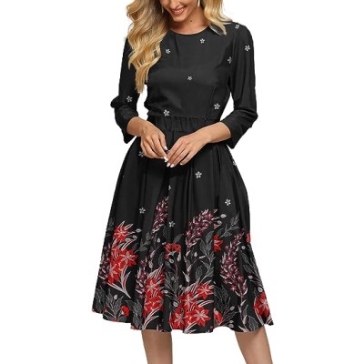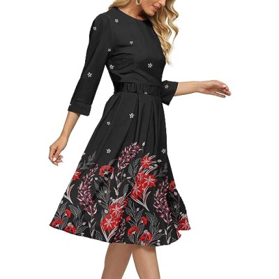Simple Flavor Women's Floral Vintage Dress Elegant Midi Evening Dress 3/4 Sleeves