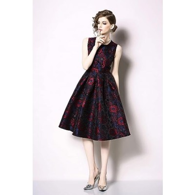 Women's Vintage Tea Dress Sleeveless 1950's Floral Garden Rockabilly Swing Prom Cocktail Party Dress
