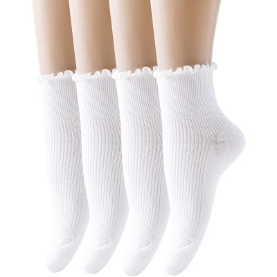 SEMOHOLLI Women Socks, Women Ankle Socks, Lovely double needle solid color Lace edge relent lady socks