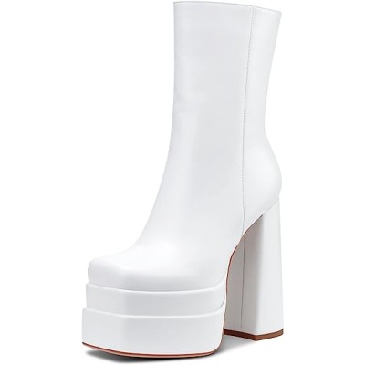 Eldof Women's Platform Boots Chunky High Heels Booties Square Toe Side Zipper Boots