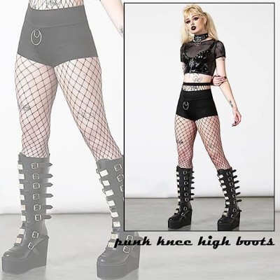 AOSPHIRAYLIAN Womens Goth Knee High Boots Wedge High Heel Motorcycle Punk Combat Platform Boots
