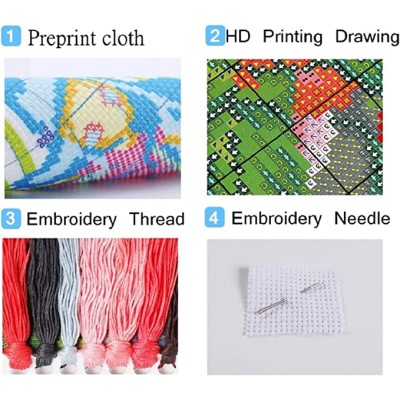 LWZAYS 4 Pack Cross Stitch Kits-Stamped Cross Stitch Kits Home Decor