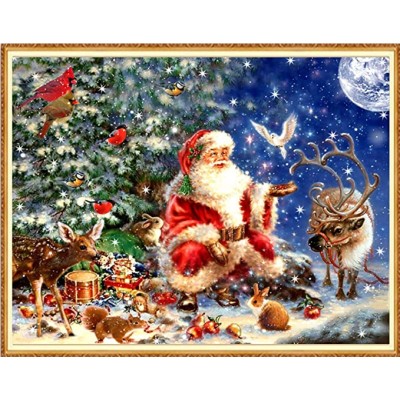 Funchey Beginners Stamped Cross Stitch Kits Range of Embroidery Patterns Starter Kits for 11CT-Santa Deer