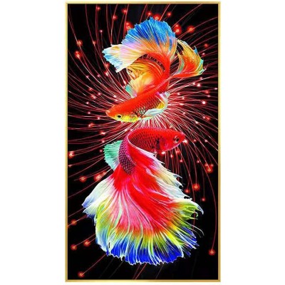 Funchey Cross Stitch Kits Stamped Full Range of Patterns Embroidery Starter Kits for Home Decor-Colorful Carp