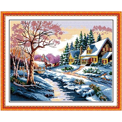 Funchey Stamped Cross Stitch Kits Beginners Full Range of Embroidery Starter Kits for Dream Snowscape