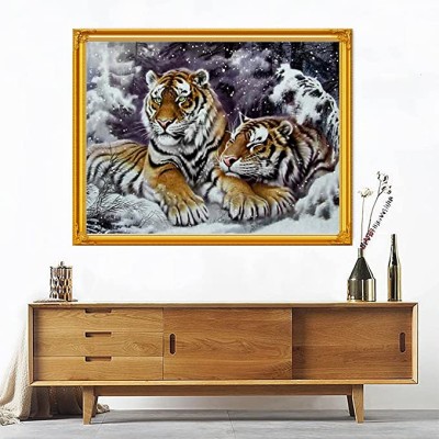 Disxvivy Cross Stitch Stamped Full Embroidery Kits DIY Two Tigers