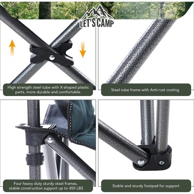 LET'S CAMP Folding Camping Chair Oversized Heavy Duty Padded Outdoor Chair