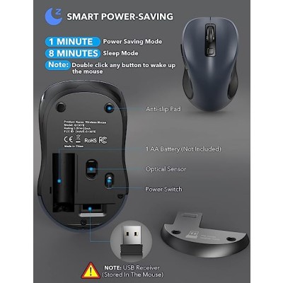 Vssoplor Wireless Mouse, 2.4G Slim Portable Computer Mouse with Nano Receiver Quiet Silent Optical Laptop