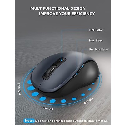 Trueque Wireless Mouse for Laptop, 2.4GHz Ergonomic Computer Mouse with Back & Forward Buttons, 3-Level DPI