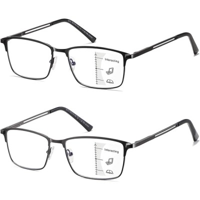 LKEYE Progressive Multifocus Reading Glasses Men No Line Multifocal Transition Blue Light Readers Metal Wide Frame Eyeglasses