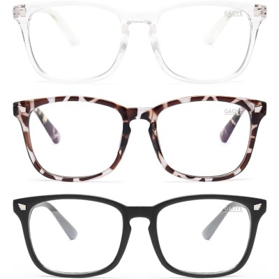 Gaoye Blue Light Blocking Glasses - 3 Pack Fashion Square Fake Eyeglasses