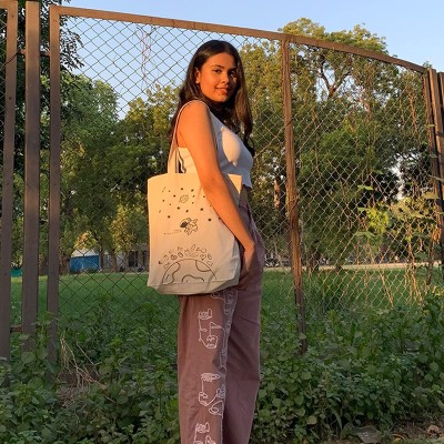UERRUAM Canvas Tote Bag Aesthetic for Women Graphic Tote bag with Zipper Cute Canvas Bags with Pockets